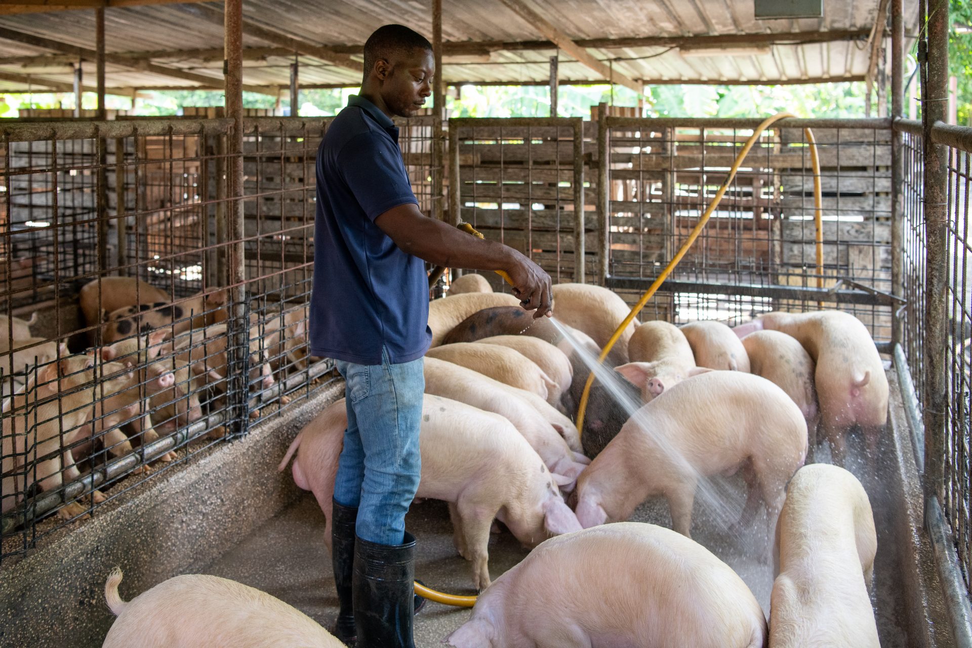 “Kriadó di porko. Esei ta mi bida. Mi ta hasié ku hopi amor. Ora mi yega mi farm mainta tempran, mi no ke bai mas. Mi stima e ambiente. Mi ta felis aki ku mi porkonan. Ora mi porkonan ta saludabel, ami ta kontentu. Semper mi ta purba hasi algu èkstra pa nan, pa nan por ta mas kómodo ku ta posibel. Bo no mester hasi esaki pa sèn so, pasó e ora ei bo no ta sobrebibí. Ta un responsabilidat grandi. Konstantemente bo mester ta alerta pa tene tur kos bou’i kontròl.”