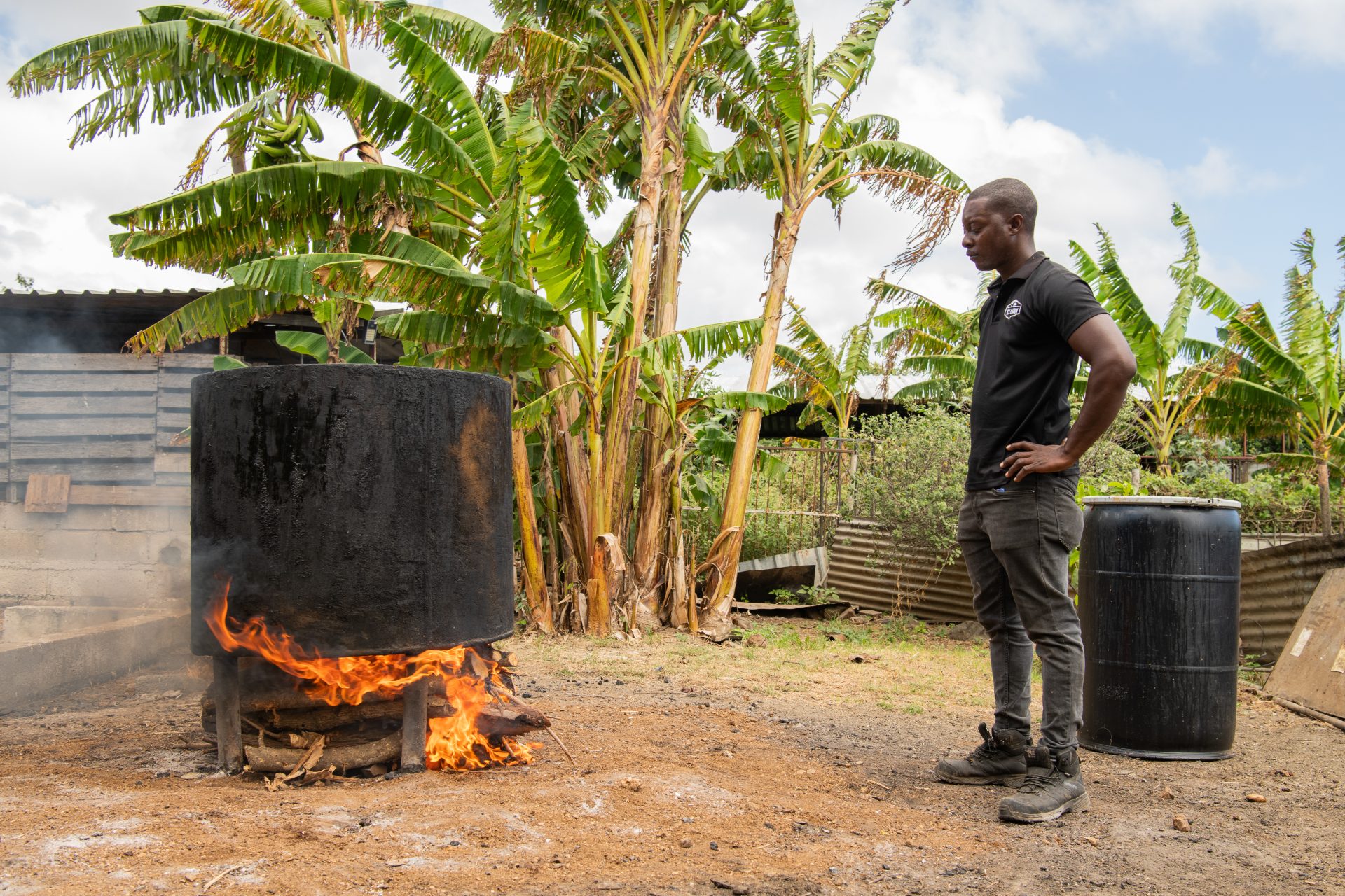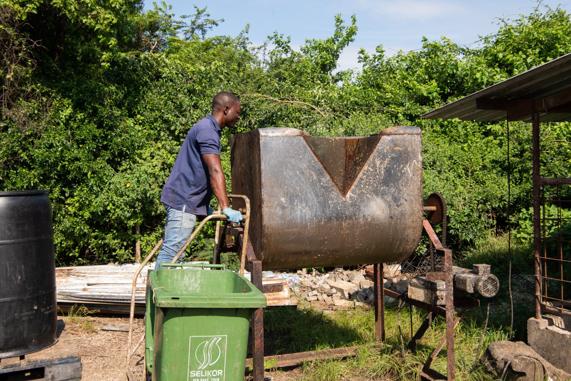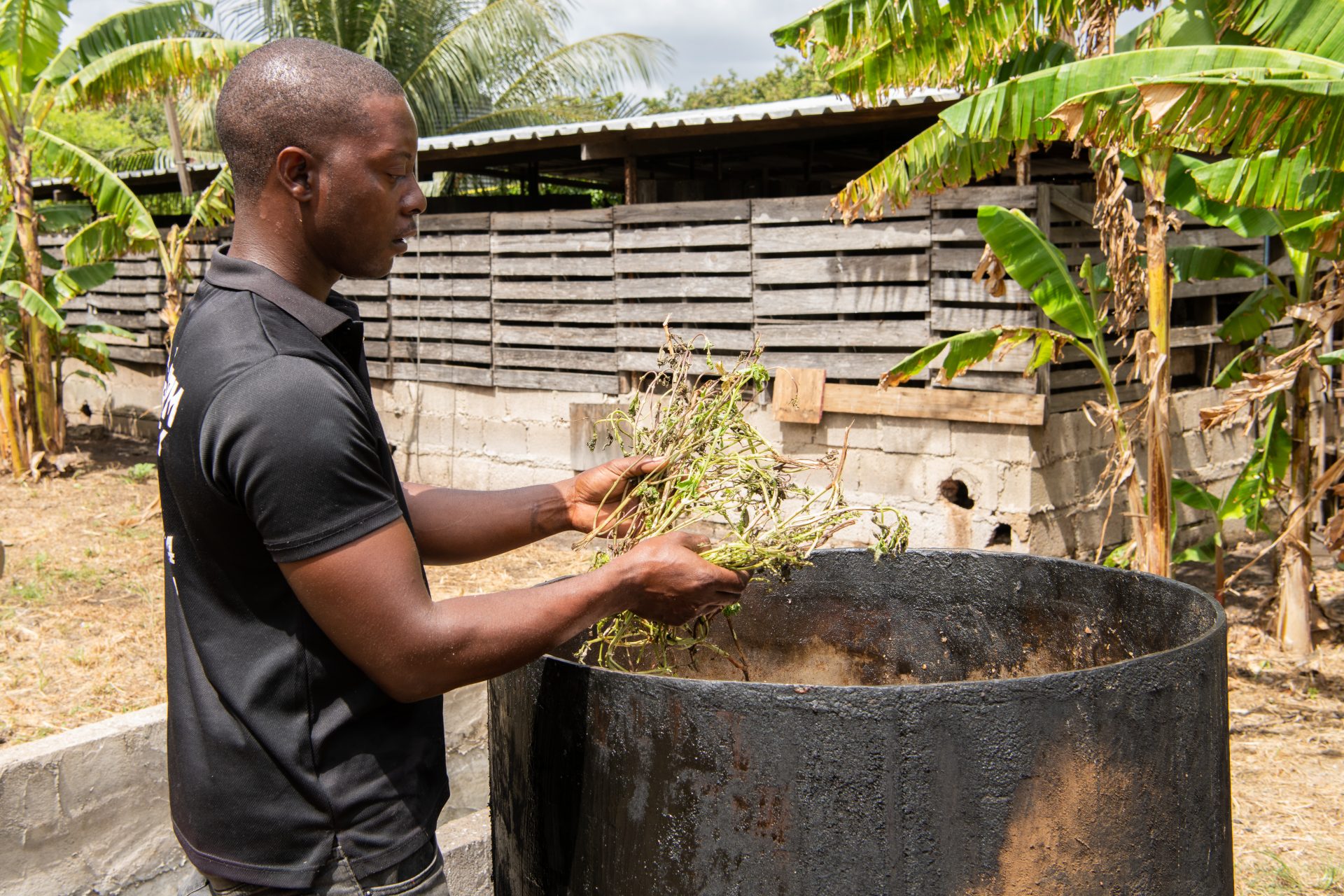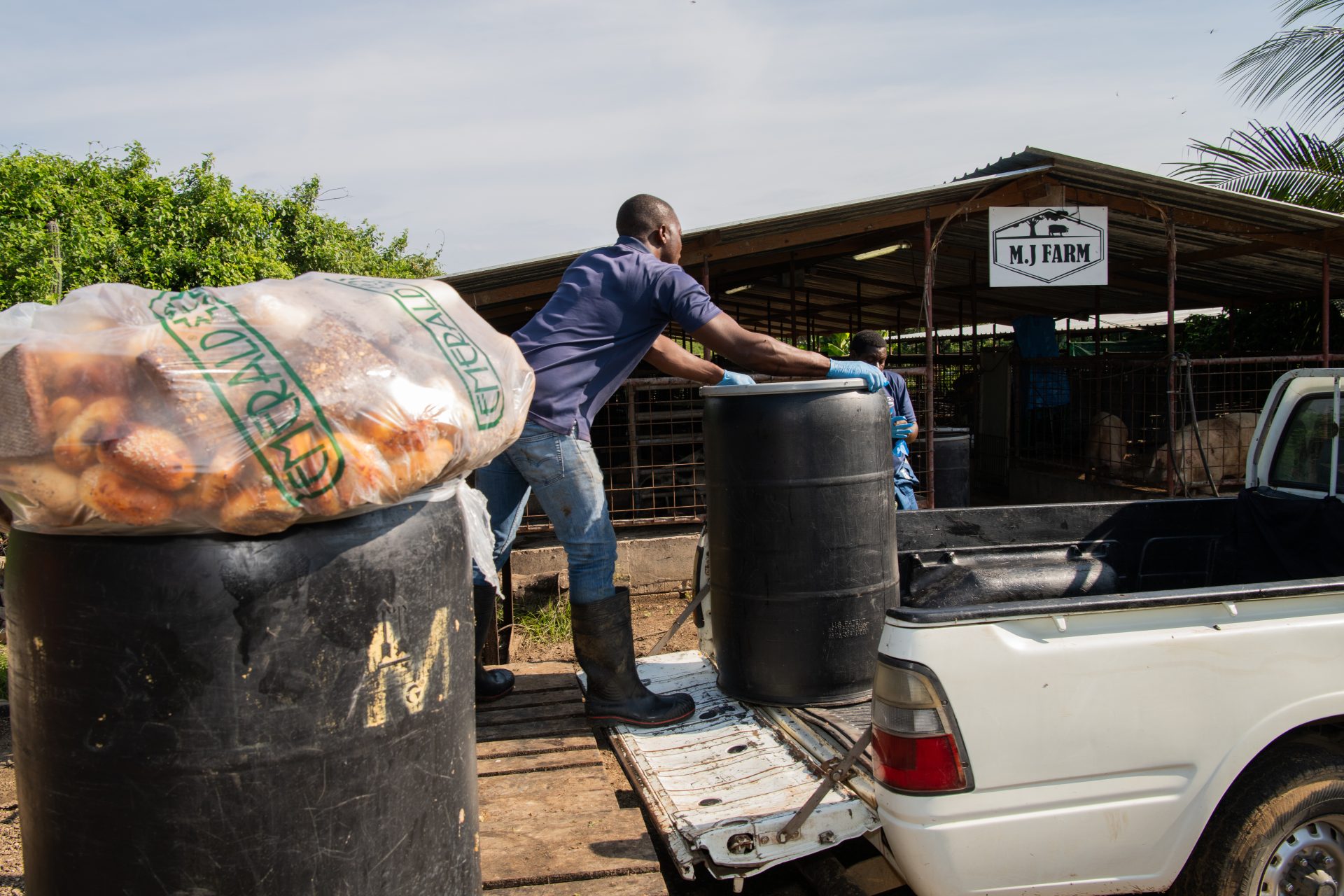 Spesial pa e finka di porko tin diferente hotel i restorant ta kolektá e sobránan di kuminda den barí. Den su pikòp Avienne ta transportá e karga balioso akí di Bándariba pa Bándabou. Na su finka e ta saka tur loke no ta komibel afó. Loke sobra e ta meskla den un mikser den e kuminda nutritivo ku el a prepará promé. E bestianan ta kome masha dushi mes!