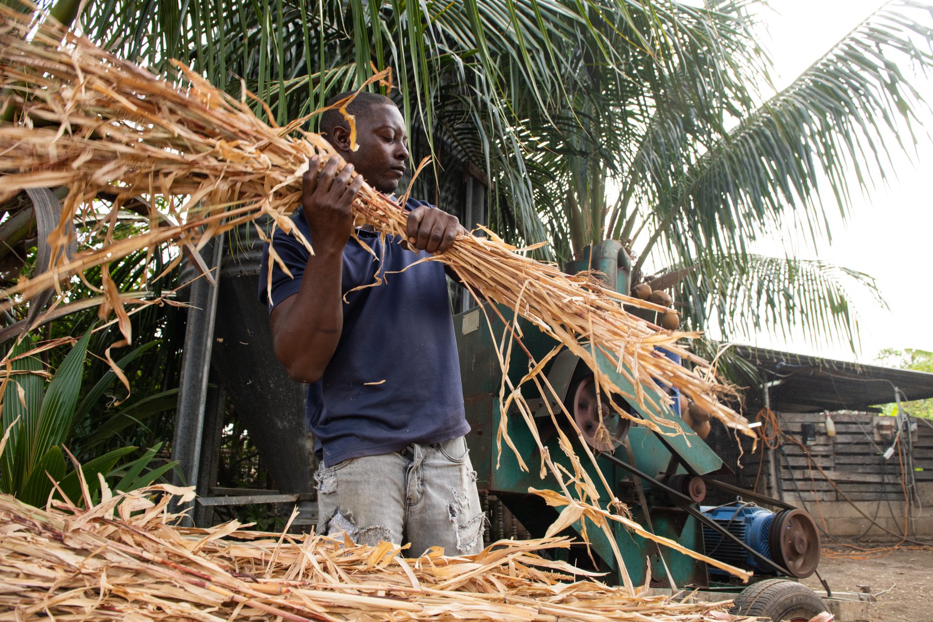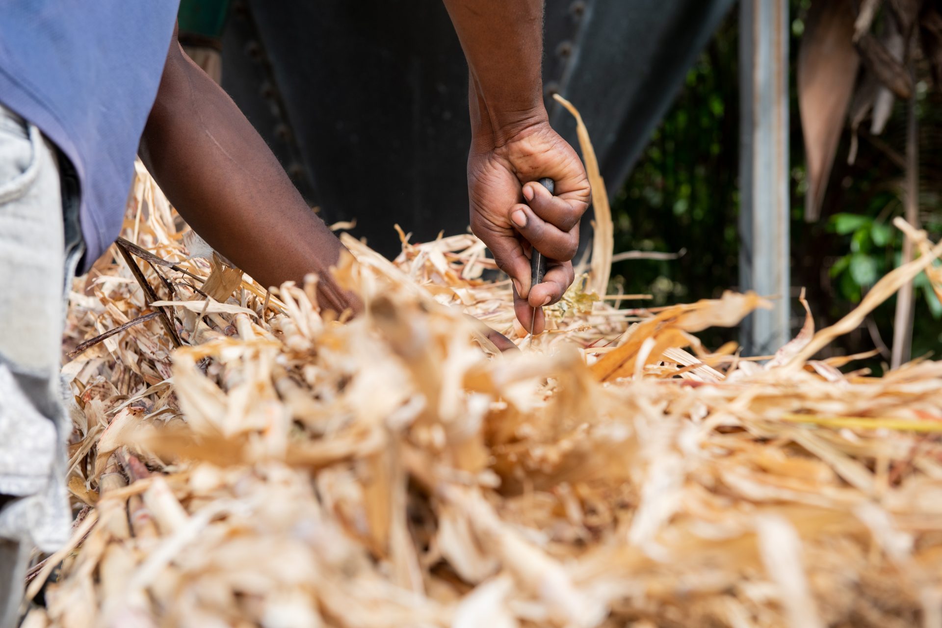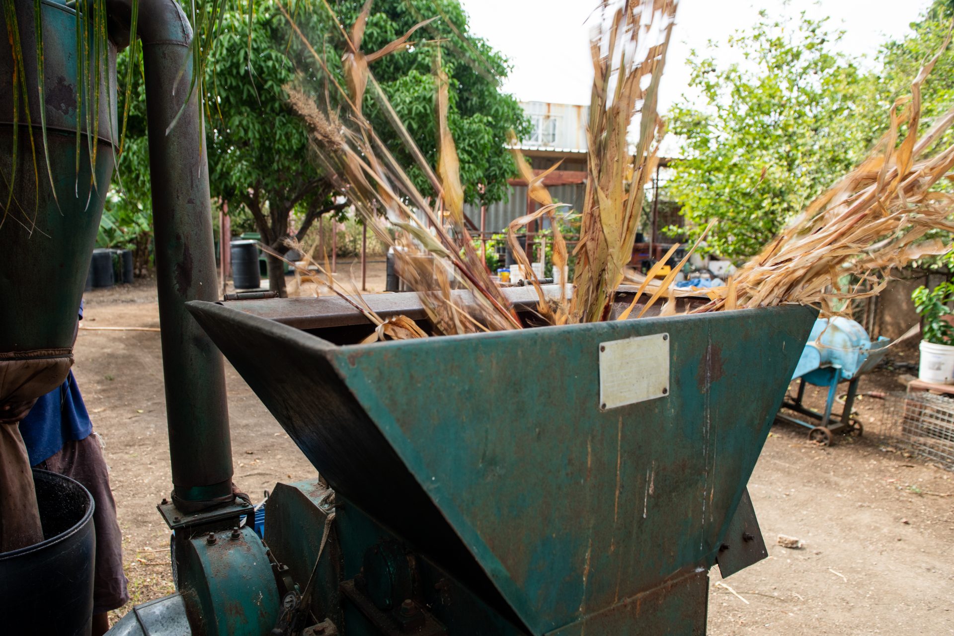 Avienne ta skohe pa kultivo lokal ku tin sufisiente proteina i mineral manera maishi, soya i maishi chikí. Ku esakinan e ta drecha un kuminda pa porko sumamente nutritivo i riku na fibra. Riba e tereno tin dos mashin ku ta kòrta e kultivo seku na pida pida. E ta laga e sas para fermentá un tempu. Di e manera ei nan tin mas suku.