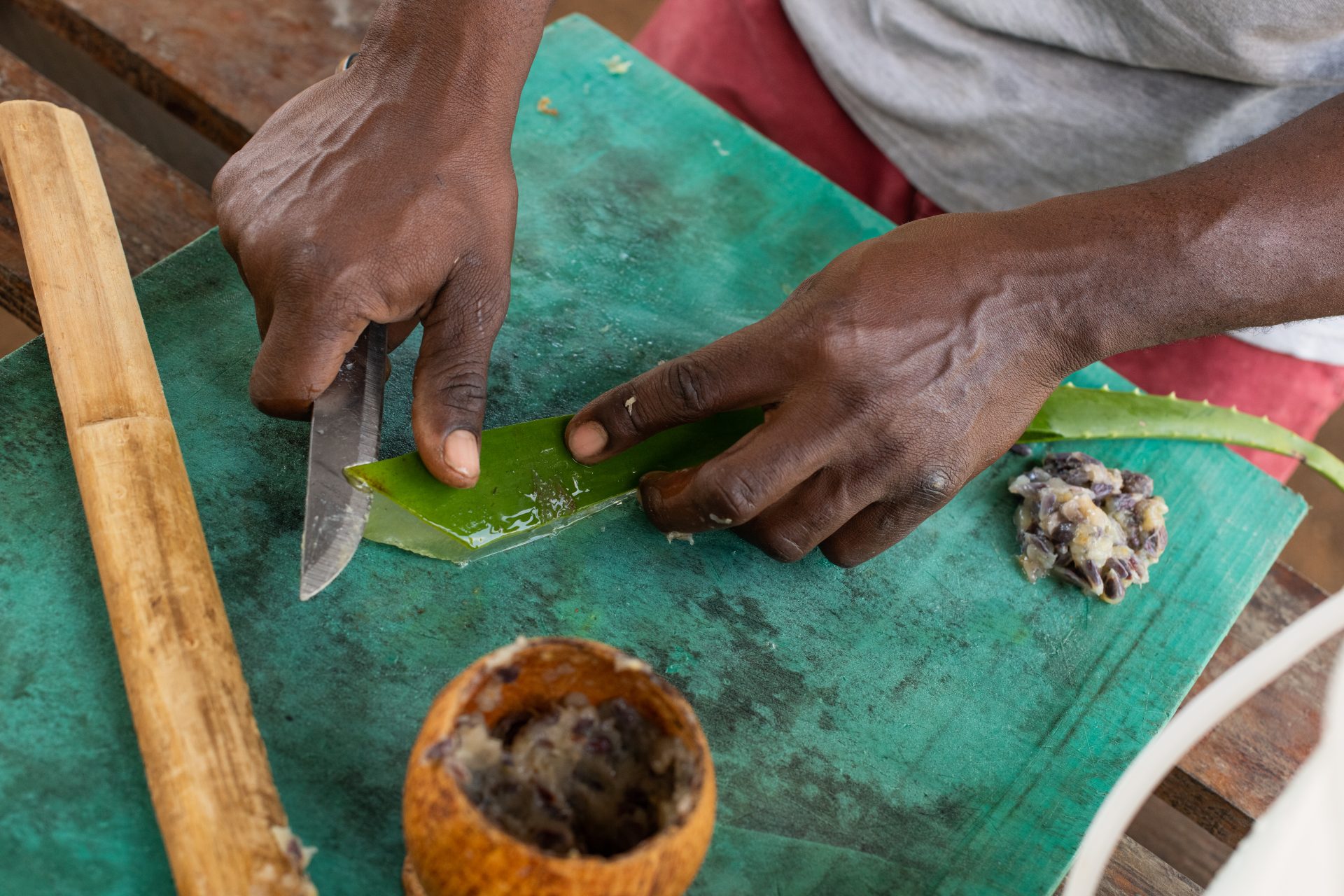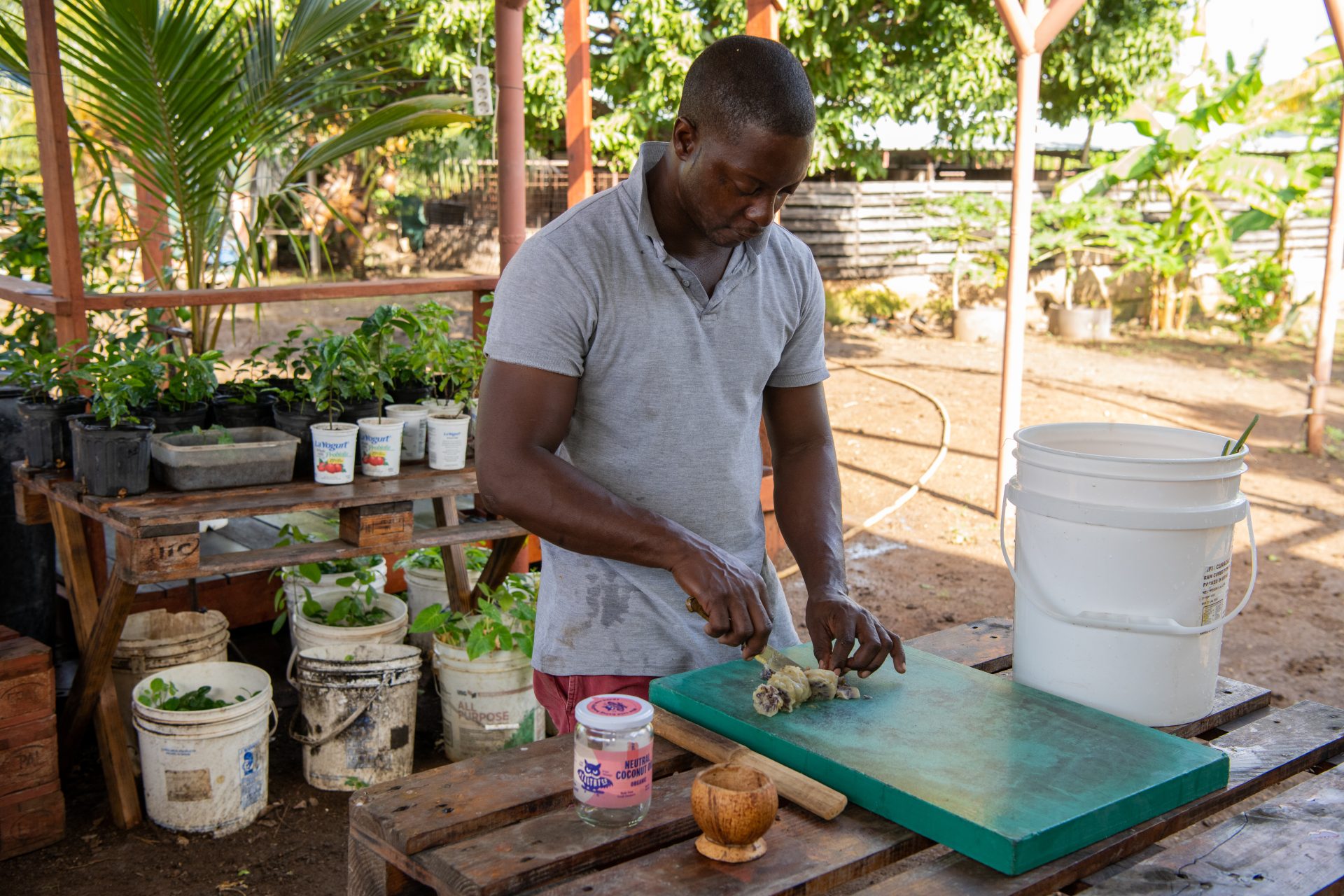 Un porko grandi ta kome 5 kilo di kuminda òf mas.”En realidat un yu di porko ta méskos ku un bebi”, Avienne ta bisa. “Kada dos pa tres siman, bo ta duna nan mas di bebe i kome. Mi tin un tabèl ta usa i mi ta wak kua bestia tin mester di mas òf kua ta haña muchu tiki.” Avienne ta usa tur su konosementu di kuminda i kuido di porko. Pero e ta adaptá loke e sa na e sirkunstanshanan di Kòrsou. E ta deskubrí mata i yerba ku e por usa komo remedi natural. Por pensa akí riba noni, sentebibu i konofló.