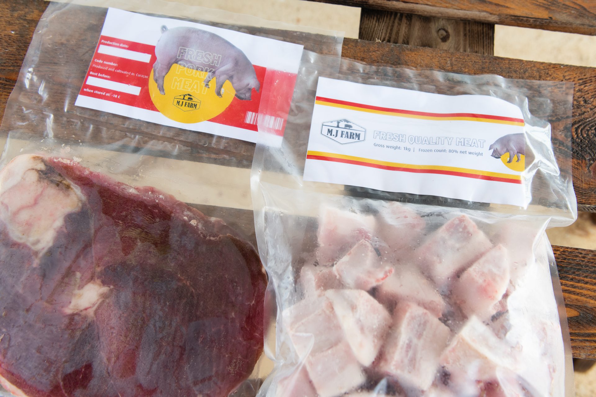 Kriamentu di porko ta e promé paso. Avienne ta trahando pa bin ku un negoshi biológiko miksto. Un finka, o manera e mes ta bisa un farm, kaminda e tin krio di bestia manera porko, galiña (pa nan karni) i karné. Un finka kaminda ta produsí e kuminda pa e bestianan, kaminda ta re–usá shushi mas tantu ku ta posibel, anto kaminda e bestianan tin sufisiente espasio. M.J. Farm ta para pa karni fresku di alta kalidat.